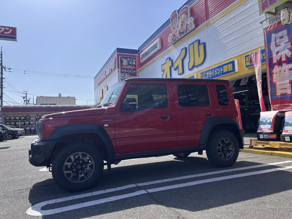 話題のジムニーノマドが来店しました。早速色々と注文を頂きこれから薔薇色のジムニーノマドライフをお楽しみいただければと思います。 赤色でめちゃいい色ですね。住吉タイヤカラーで、欲しくなっちゃいますね[…]
