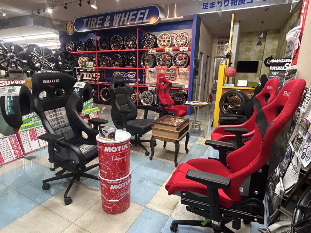 ブリッドシートをまとめて展示しました。本当に素晴らしいです。 住吉タイヤはシートに座って、コーヒータイムもできます。日本でこのような形で展示&待合スペースにしている店はあまりないかもしれませ[…]